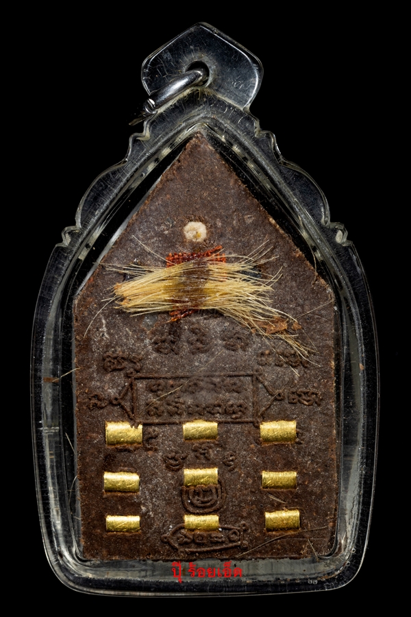พระขุนแผนยอดฉัตรหลวงปู่หงษ์ พรหมปัญโญ รุ่นยอดฉัตรฉลองอายุ 90 ปี สร้างปี 2551 หน้ากากทองคำ กรรมการพิเศษ ด้านหลังตะกรุดทองคำ9ดอก เนื้อก้นครกเกศาเยอะมากๆ